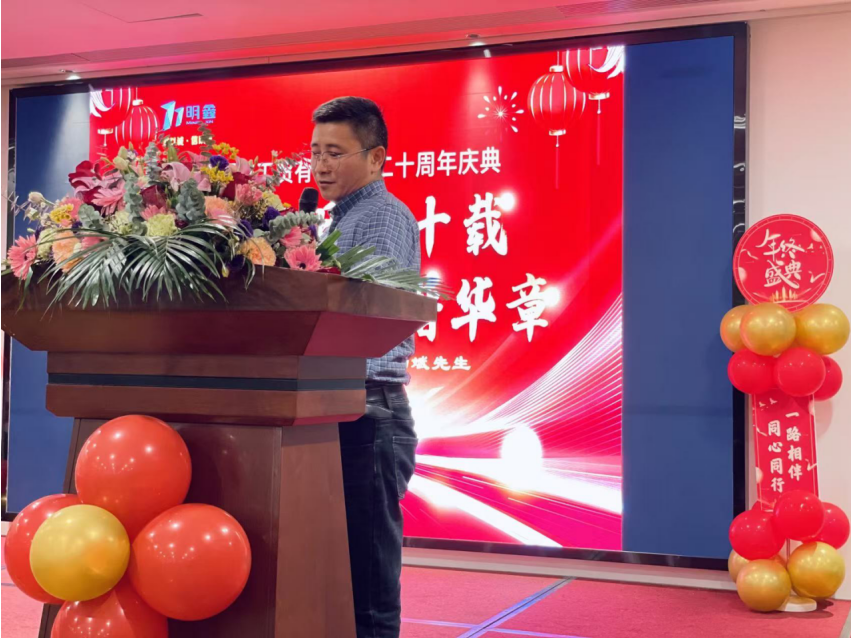 特邀嘉宾代表对明鑫工贸二十周年表示祝贺,肯定了其在行业内的贡献,并期待未来深化合作,实现互利共赢。